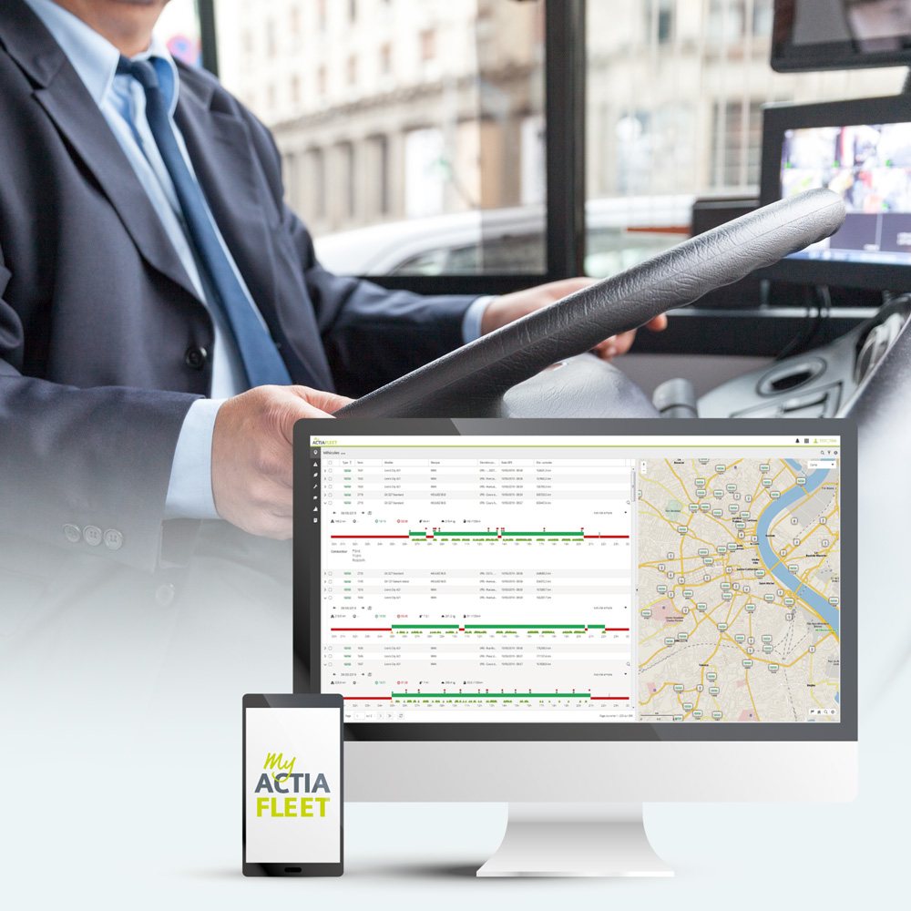 ACTIA has deployed myACTIAfleet with an eco-driving unit visible to drivers and real-time monitoring by managers. The on-board screen allows drivers to receive instant advice on their driving, while managers access a centralised dashboard displaying energy saving and driver safety scores.